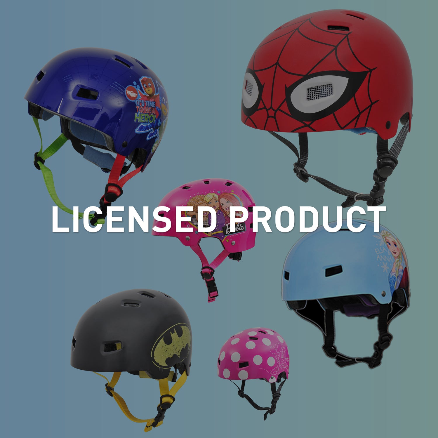 Our licensed helmet products featuring favourites like Spiderman, Minecraft, Jurassic Park, Bluey,...